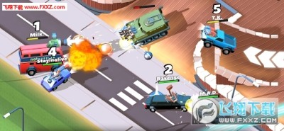 在游戏中,玩家要和对手展开刺激有趣的汽车碰撞大逃杀。不断吃下场景内的小皇冠,努力成为皇冠数量最多的王者!但同时要躲避来自敌人们的各种攻击!场景内有各种未知道具可以拾取,能够帮助你加速、投掷障碍、发射子弹等。