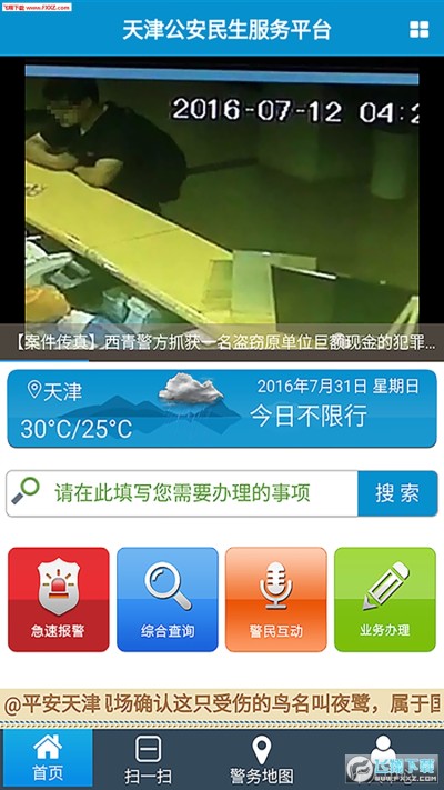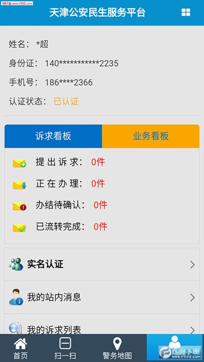 天津公安民生服务平台APP百姓端,百姓可以在平台查看最新的警务动态、通知通告、警方报道、查询车辆违章、驾驶员记分、身份证办理进度、出入境证件办理进度、走失人口、案件进度、司法鉴定、失物招领挂失查询,同时在实名认证后可以生成个人相关的公安大数据报告。