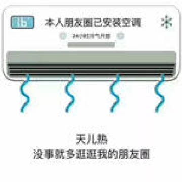 本人朋友圈已经安装空调表情包是一款十分有趣的搞笑表情包,最近气温陡然升高,许多小伙伴被猝不及防的高温给热的满头大汗,玩家们便制作出这款本人朋友圈已经安装空调表情包,需要的小伙伴赶紧在朋友圈里发一下吧~