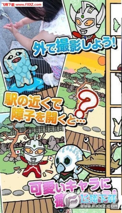 只要简单得打开纸门,就能与奥特们和怪兽们相见了。在十秒内享受他们的可爱并为他们拍照吧;