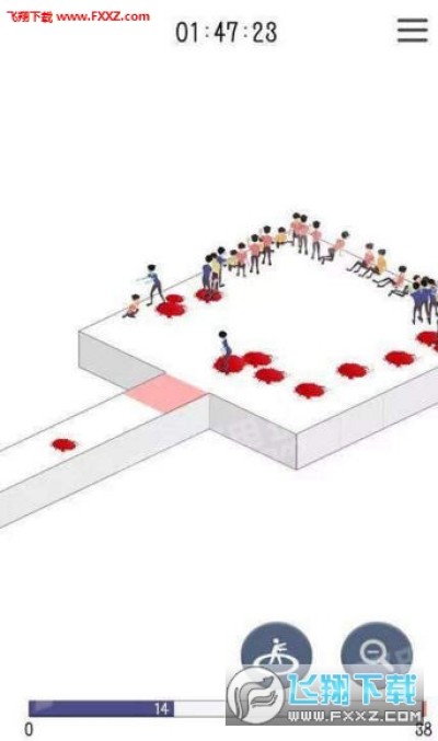 丧尸:主角只会在玩家操作下运动,而其他被感染者则会扑向一定范围里距离自己最近的未被感染者,在周围没有人类的时候其他丧尸会跟在主角后面。