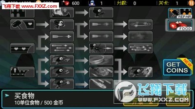 4.游戏每一关结束后可以进入升级系统。这种就像技能树的升级系统小编非常喜欢。你可以在这里升级装备和招募新兵种。也可以用金币维修城堡,以及购入食物等。