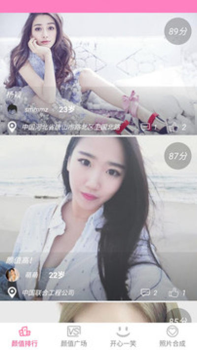 2.颜值广场:可以看到周围朋友上传的颜值数据。