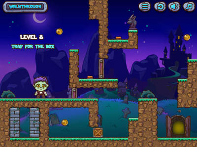 游戏中许多关卡需要配合僵尸头,箱子和南瓜头来打开机关,不要让任何有火的东西碰到你,而且拿着灯或者火把的人还会来找你,想烧死你,用智慧打败他们吧!否则只能REPLAY!