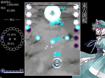 从名字就可以看出《东方斑樱》是一款“东方Project”的同人游戏,本作的玩法借鉴了Treasure公司经典弹幕射击游戏《斑鸠》的系统。加入了相生相克的概念,其原理就是玩家驾驶的战机颜色会影响你对敌人造成的攻击力强弱。