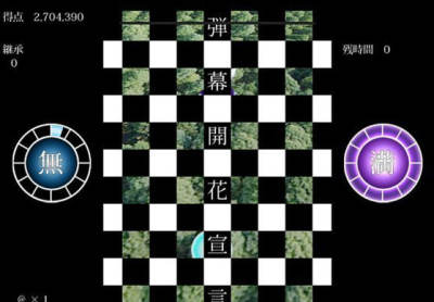 敌机发出弹幕的速度不快,自机的中弹判定不强,比较容易躲避。敌人弹幕分为黑白2种属性,被同属性的弹幕中不受伤害,相反还可以吸收同属性弹幕作为能量释放,在吸收敌方子弹的同时,能量槽会增加,可以消耗能量发动bomb。如果被不同属性的子弹击中就OVER了。 游戏中不但要灵活运用属性转换,还要利用攻击异属性飞机时的攻击力是攻击同属性飞机的2倍这一特点。