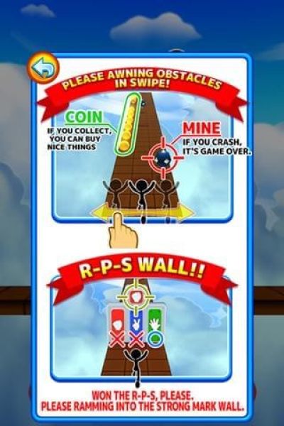 火柴人奔跑是一款超刺激的动作类游戏,火柴人奔跑在奔跑过程中会有怪物在后面追逐,同时又有剪刀石头布的图标,你能躲开大怪物的追捕吗?帮助火柴人进行奔跑吧!