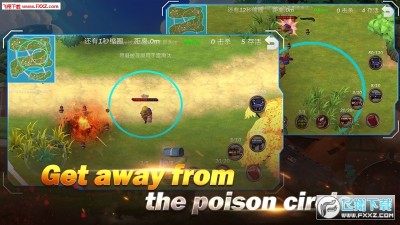 3.随着时间的流逝,毒圈逼近,安全区缩小,撤离毒圈,回到安全区内。
