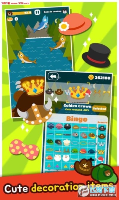 穿上装饰的熊宝宝看上去更可爱啦,要避免的炸弹和玻璃瓶,不要错过黄金三文鱼,会带来更多的三文鱼,乌龟会降低游戏速度,鳗鱼会让你的精力上升,鲶鱼让你得到双倍积分,是不是很有趣。