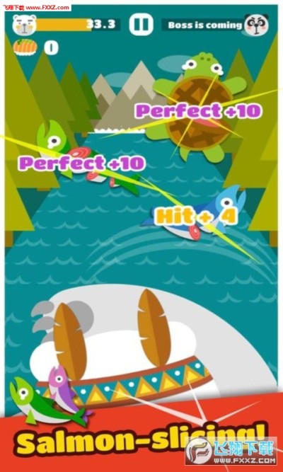 你可以得到多少的鱼呢?快力帮助我们的熊宝宝开始捕猎吧,各种各样的鱼,切的越多得到的分数也就越多,和熊决斗,快速的动作使用你的利爪,不要忘了保护你自己,游戏中不同的鱼还有不用的作用,喜欢的朋友赶快的来下载一下吧