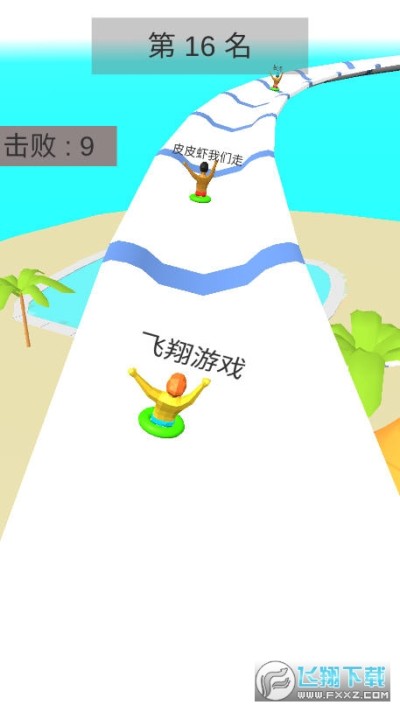 2、一起来在水上乐园大乱斗,在激流湍急的水上公园滑行大作战进行比赛,成为最快到达终点的玩家,体验到io类游戏的竞技乐趣。