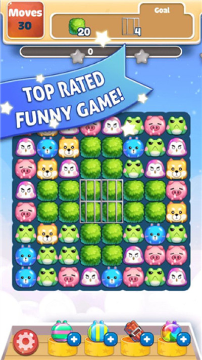 3、丰富的个性化的有趣游戏关卡,游戏难度适中,掌握一定的操作玩法,就能消除更多的动物。