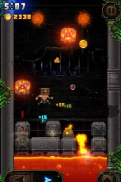 火山塔游戏(Volcano Tower)是一款有趣的跳跃类游戏,在游戏中玩家可以挑战惊险的火山塔,你的头顶会不断的向下降落熔岩,通过左右移动来避开这些致命的熔岩,玩家可以不断落下的石头上攀爬,除了掉落的熔岩石块,空中还会落下各种不同的道具,金币袋、时间减缓道具、无敌道具等等,你的目标就是不断的攀登高峰!