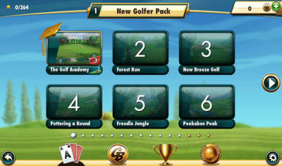 《高尔夫纸牌3:开球》是高尔夫纸牌系列的最新作,游戏中接龙依旧围绕着高尔夫球展开,而每一作都会出现的地鼠自然也出现在这一作中。游戏中每一个球洞都是一个独特的纸牌布局,包括有沙坑,池塘等高尔夫球中常有的障碍,通过接龙的方式让球进入球洞。剩余的牌的数量为你挥杆次数,低于标准杆则过关。