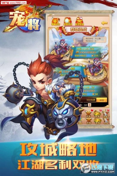 宠将游戏是一款休闲的卡牌策略类游戏,这款游戏中是以三国时期的故事作为背景题材,大量的三国时期武将角色任你自由选择,根据你的选择不断的强化和提升来完成这些挑战,利用你的战术和策略性,排兵布阵,自由对战,享受运筹帷幄的对战快感。超Q的各种英雄人物,独特的专属技能特效,自由战斗自动pk,无需反复操作,一键轻松挂机,驰骋沙场,战无不胜。