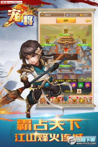 2018爆款Q版三国《宠将》卡牌RPG休闲塔防游戏,三国武将任您选,知名战阵随您搭配,倾城美人陪伴在侧,神州诸城任您征服,休闲中让您轻松感受到嗨翻天的体验。坐镇军中便可攻城略地做主公,方寸之间就能征战沙场显神威,超炫酷的特效,Q萌的武将美人神兵坐骑,让玩家真实享受做主公的乐趣。