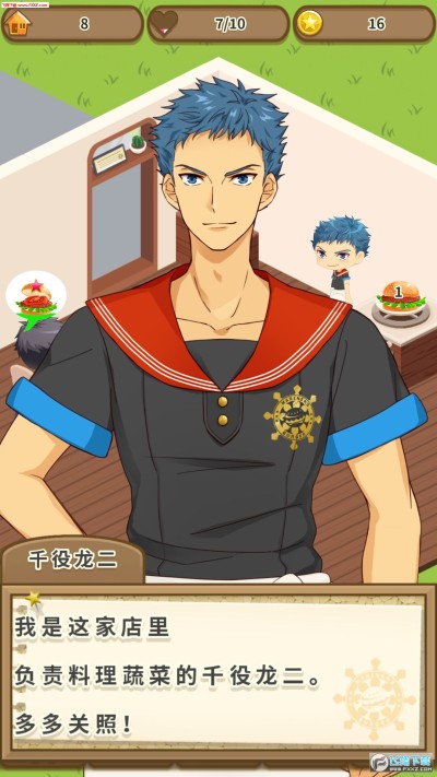 2、经营模拟部分:咖啡屋中另有5位帅气的小哥哥负责各项事宜,他们有着各自的剧情,对话甚至有声优配音。