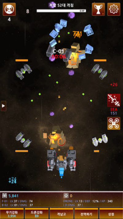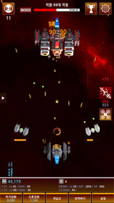 另外,游戏还有一个十分有特色的设定,那就是亲自点击操作射击,将会有两倍的攻击输出,而没有点击时将会有强大的保护罩能力!