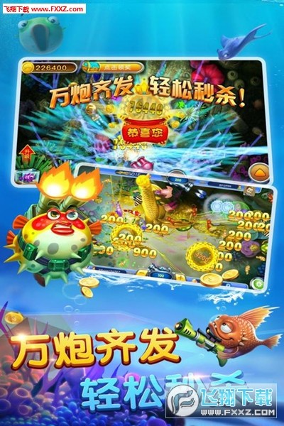 2、多种炮台规格,十炮、百炮、千包、万炮,疯狂开炮,万炮齐发。炮台基数越高,捕鱼赢得金币越多,秒变土豪,完美逆袭就是现在