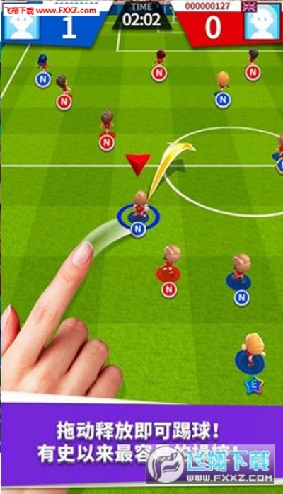 2、简单直观的操控:滑动屏幕并释放即可传球和射门;