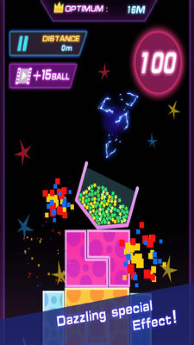 触摸屏幕消除方块,让容器下落,不要让小球溢出来,下落越多分数越高,看你在丢掉所有的求之前能走多远,去不断刷新你的纪录吧!
