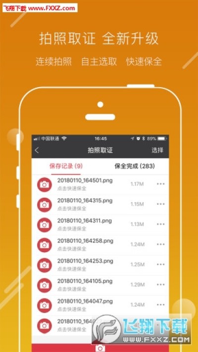 拍照取证功能可以连续拍照,并且可以一键快速保全,所采集的照片数据实时上传云端进行加密保存,永远不会丢失和被篡改,拍照时采用公安部用户身份信息识别系统,确认拍照人员的真实主体身份信息。同时云端还保存拍照取证时手机GPS定位的地理位置信息和由国家授时中心提供的标准时间,从而明确拍摄照片数据生成时间、地点的准确性。无论是交通事故现场取证、突发事件取证、司法案件取证、民事纠纷取证均适用。
