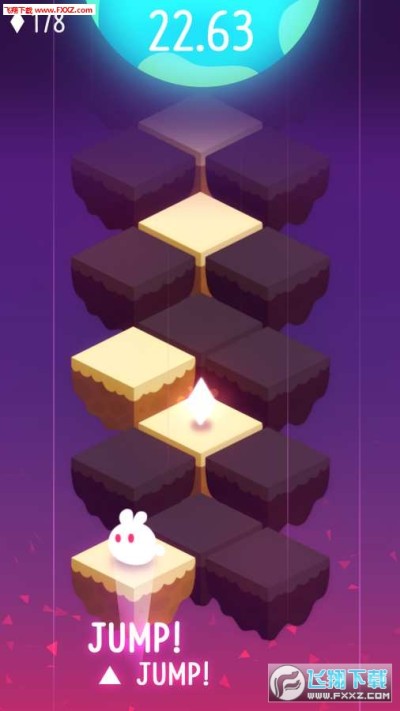 玩家要控制可爱的玉兔在有限的时间内爬层。