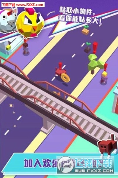 小粘球在翻滚的过程中会把碰到的物体都粘在身上,然后不断变大,只为粘上更多的物体。但在滚动的同时也要注意躲开头上带有红色感叹号的障碍物,带有红色感叹号的表示小粘球暂不能够粘上他,否则就会被迫停止翻滚哦从而终止游戏。