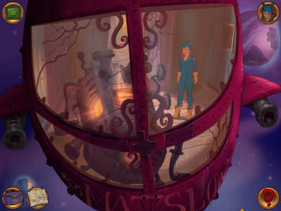 游戏的画面与前作区别不大,卡通风格的画面柔和而精致,主角所处的是一个古怪的世界,老式外观的高科技物品,木质结构的太空船,让游戏充满了一种矛盾的美感。