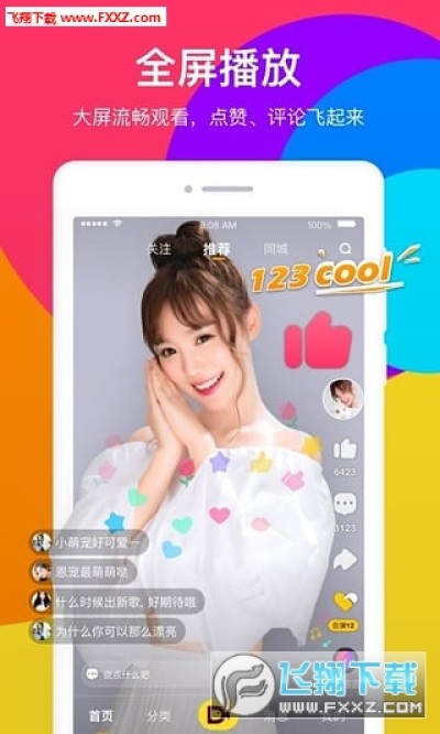 --全屏观看视频,点赞分享偶像的视频,为爱豆打call;