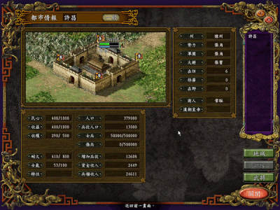 3.保持政治平衡。我玩三国9一般不用外交发展友好,主要就是依靠守城战,保持各势力间平衡。用上面那种守城的方法,只要有甲势力来攻你,肯定损失兵力,那与他邻接的乙势力肯定会趁机攻击,这是可不要贪便宜占领甲势力,除非你有能力与乙对抗,这时你要么坐山观虎斗,要么帮助弱的一方,在你拥有绝对优势以前,尽量不要让某个势力太强。