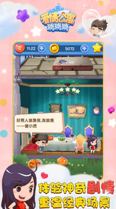 爱情公寓消消消是一款以经典IP《爱情公寓》打造的全新三消类休闲手游,爱情公寓消消消拥有经典的角色形象以及轻松休闲的三消玩法,再加上独具特色的模拟经营搭配系统,玩家将在这里体验最具社交性以及娱乐性的休闲玩法!