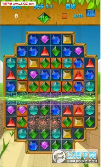这是Android平台上一款经典的三消宝石消除类的游戏,你的任务赢得钻石之星,尝试每一个关卡都能够获取所有的星星。将三个或三个以上相同颜色的钻石排在一起即可将它们消除掉。