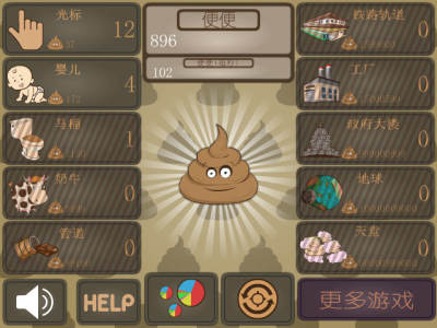 这是一款挂机性质的FLASH小游戏,游戏没有很明确的目的,只是让玩家不停的堆积便便,征服全世界。屎黄色一样的界面或许并不符合大众的审美标准,不过猎奇玩家绝对会喜欢这款游戏的。游戏只需要一开始鼠标点几下就可以开始挂机了,非常简便。