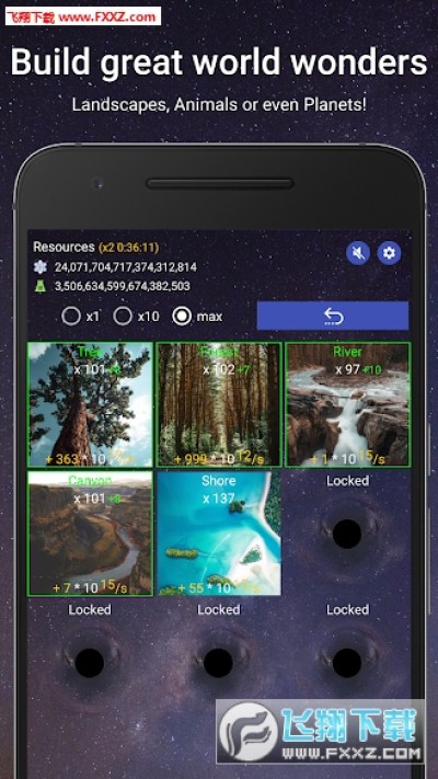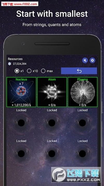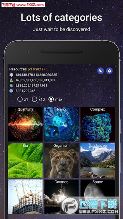 基于放置游戏和点击游戏的玩法。没过一段时间,你的宇宙会产生新的能量。你可以用它们创造新的物质,构建更多的已由物质,甚至创造新的世界!
