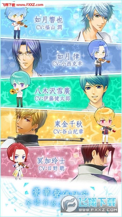 《金色琴弦3:青涩恋曲》是由日本光荣特库摩正版授权监制、辣椒方舟代理的女性向手游,以古典交响乐为背景的模拟养成恋爱类手机游戏,也是《金色琴弦》系列的首款手机游戏。唯美浪漫剧情内容,精美立绘CG图片,玩家们将与12位才华横溢的帅哥们组成一支乐队,为你们的梦想为努力奋斗!当然玩家还可以任意选择一位进行攻略展开恋爱之旅哦!12位个性男神,任你恋爱模拟!