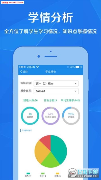填空、选择、判断自动批改,自动生成作业统计报告!