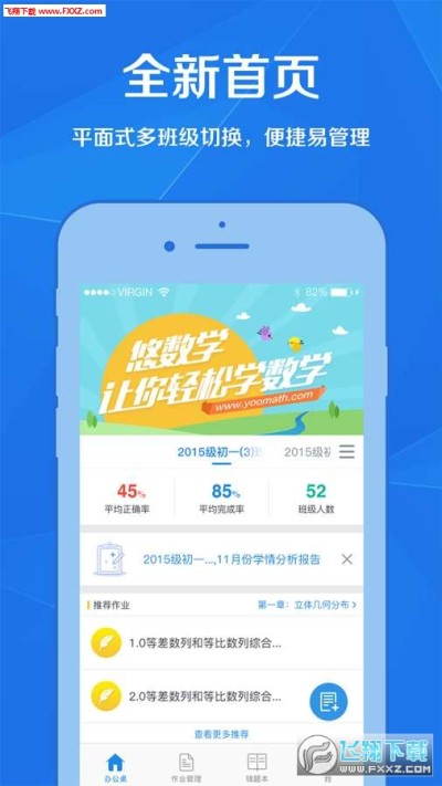 悠数学教师版app是一款提供给老师使用的版本,这款软件主要是为了给用户提供非常方便的教学工作,在悠数学教师版上老师可以一键布置作业,在手机上就能检查作业进行批改,还能自动生成统计报告哦,快来下载试试吧!
