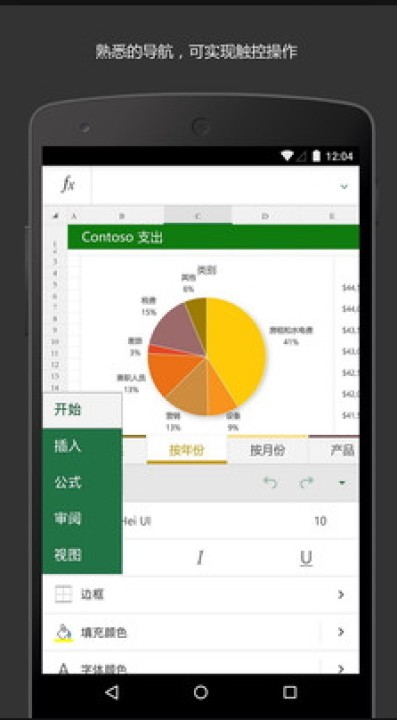 • 使用Excel应用您可以轻松挖掘数据背后的深层次意义。通过简单的手指触控操作轻松添加公式、重排列、调整表格大小等。