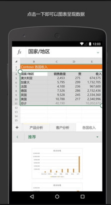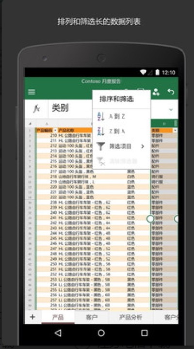 • 安装Excel应用后可以使用公式、图表、表格、排序、筛选等功能对数据进行整理分析,使数据可视化。