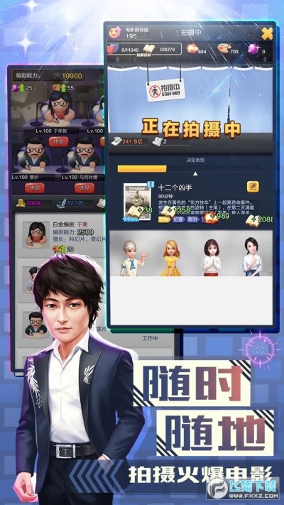 1、选择剧本,指派艺人,拍摄适合类型的电影;