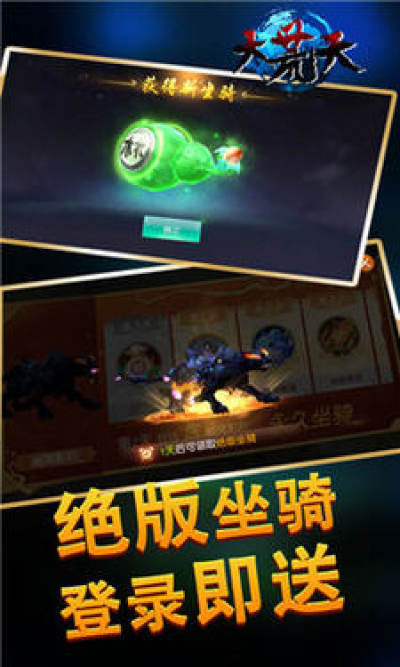 1、绝版坐骑,伴你修行,登录即送;