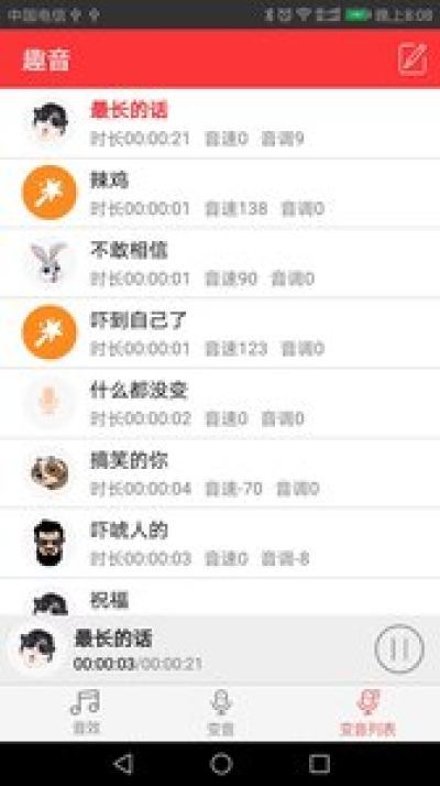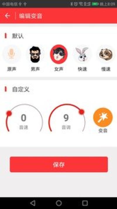 3.趣音具备强大的变音功能,可以将自己录制的声音按照默认的模式或者自己编辑成各种各样的效果。