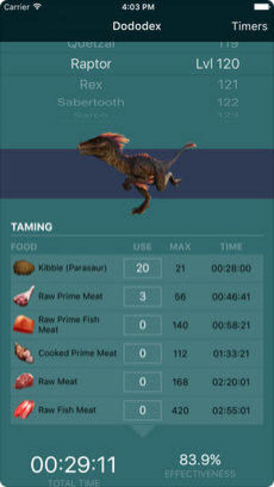 Dododex 方舟:生存进化(Ark: Survival Evolved)驯服计算器是一款专门为方舟生存进化使用的游戏辅助软件。通过使用用户已超过 400,000 人的Dododex驯服计算器和指南应用来提升Ark: Survival Evolved的游戏体验。