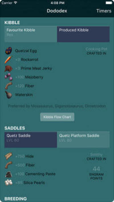 Dododex为Ark: Survival Evolved中的每种生物提供一个综合全面以及经常保持更新的指南手册,其中包含驯服计算器、饲料和鞍的配方、生物属性、计时器、每种武器的击晕效果信息、以及独创的提示和从成千上万的ARK玩家中收集到的大数据信息。