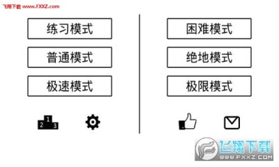 游戏包括6个模式:练习模式,普通模式,极速模式,困难模式、绝地模式和极限模式;