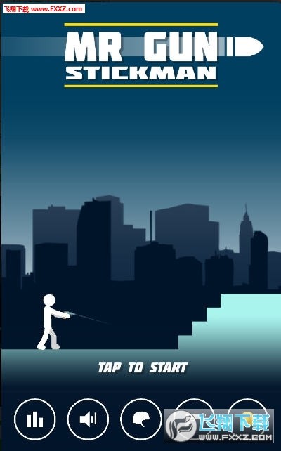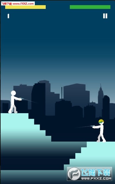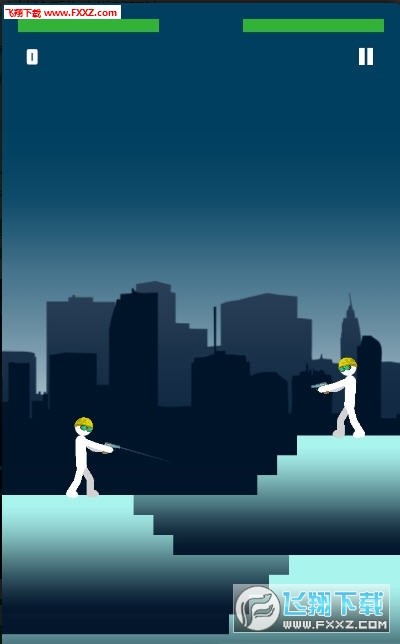 这个游戏非常的简单,就是两个火柴人对准对方射击,一人一枪,没有射中就上一层楼,被对方射中后游戏就结束了,比较考验玩家的控制力