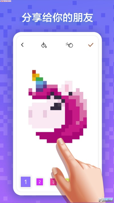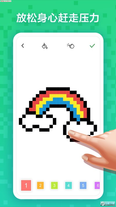 Pixel.ly可帮助你缓解压力和对抗焦虑。最有趣的像素涂色书,不需要懂得色彩搭配,只需要根据已有的数字提示,使用对应的颜色涂色,即可创造完美的作品。
