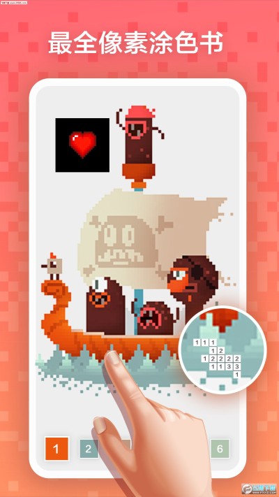 这是一款经过汉化处理的像素类图片处理软件,它不需要你有多高的创造力,不需要懂得色彩搭配,只需按照要求填充色块即可,直接进行拖动就可以进行涂色,还可以起到减压的作用!