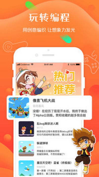 打开“编程猫”APP,年轻的训练师们可以随时随地进入到编程猫的世界中,收集并升级自己所喜爱的源码精灵,然后踏上激动人心的冒险之旅!